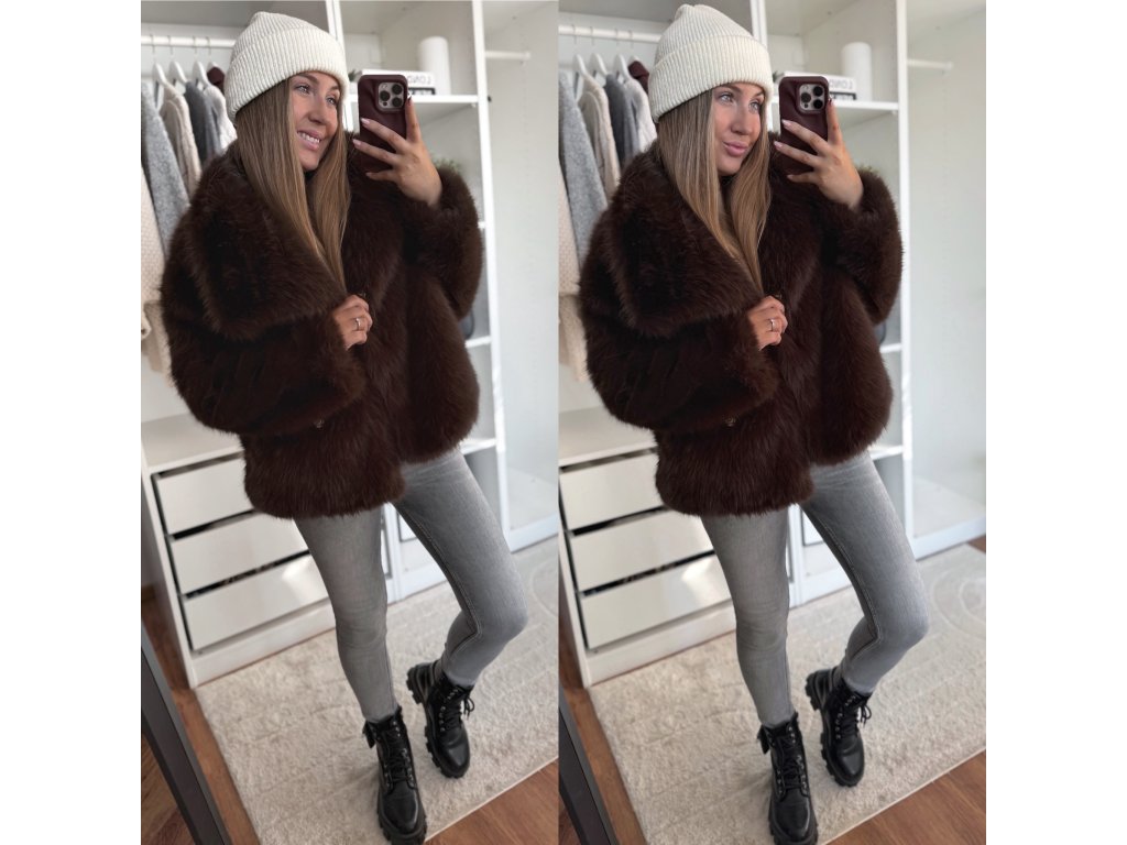 Úžasný hebký kožich z umělého chlupu s velkým límcem