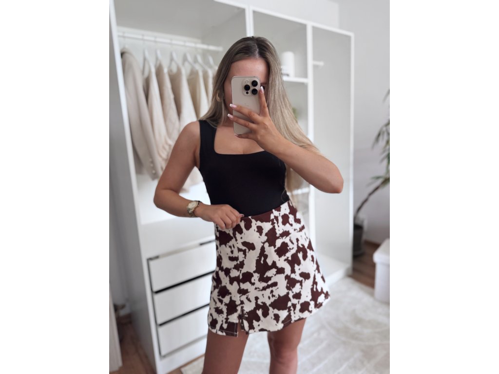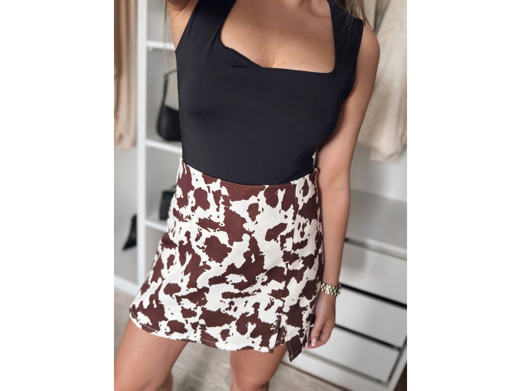 Skort (kraťásky, které vypadají jako sukně) v trendy vzoru tohoto roku